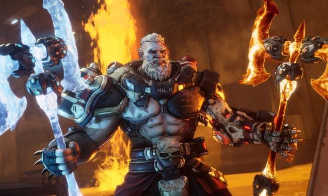 Arena Setup: Thorne fights with flamethrowers, incendiary drones, and molten geysers erupting from the arena floor.